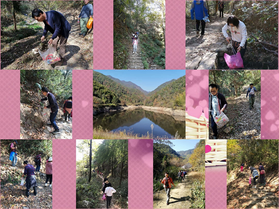 大家边走边呼吸山里的新鲜空气,在欣赏优美自然风光的同时,不忘捡拾垃圾,用自己的实际行动宣传环保,践行 “绿水青山就是金山银山”。